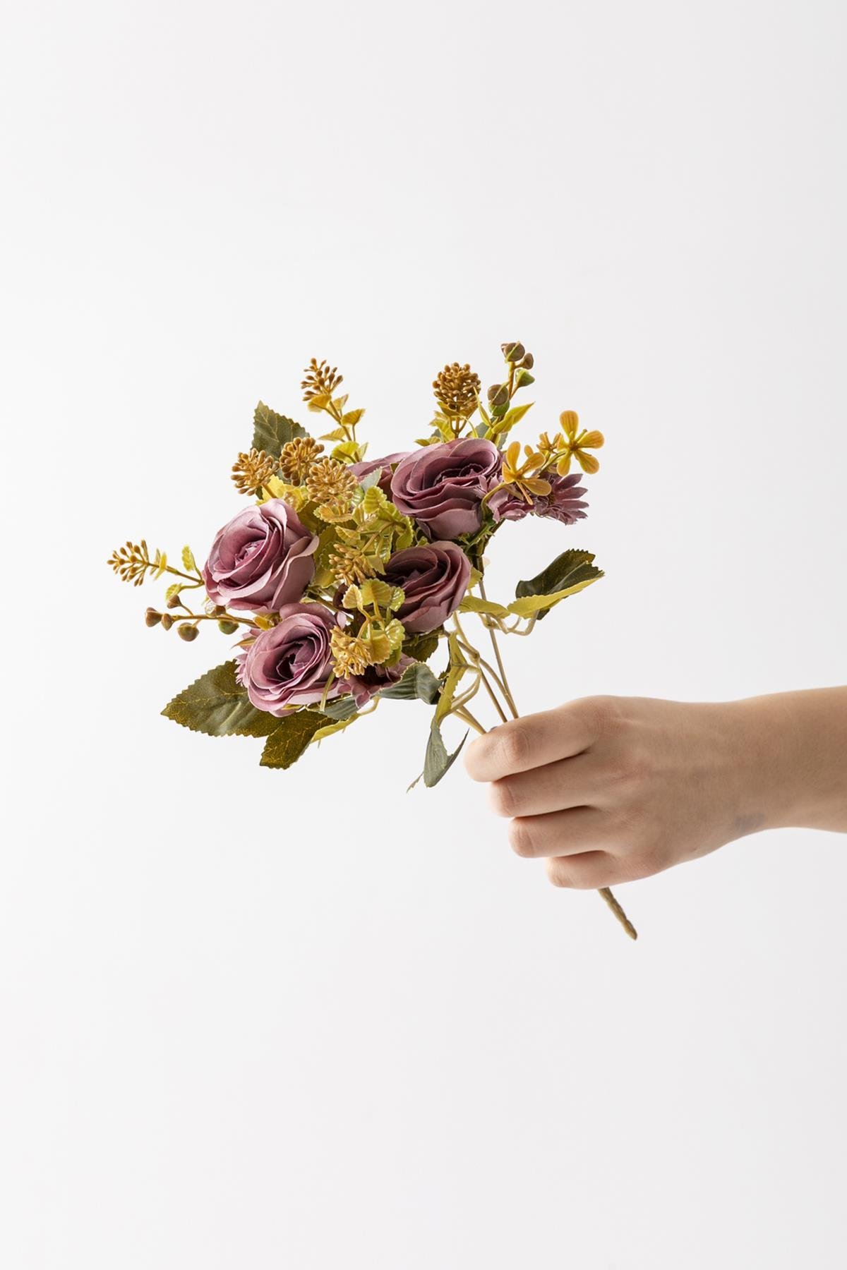 Yapay Gül Demeti 30 Cm 6 Dal Mor (YCA123127)